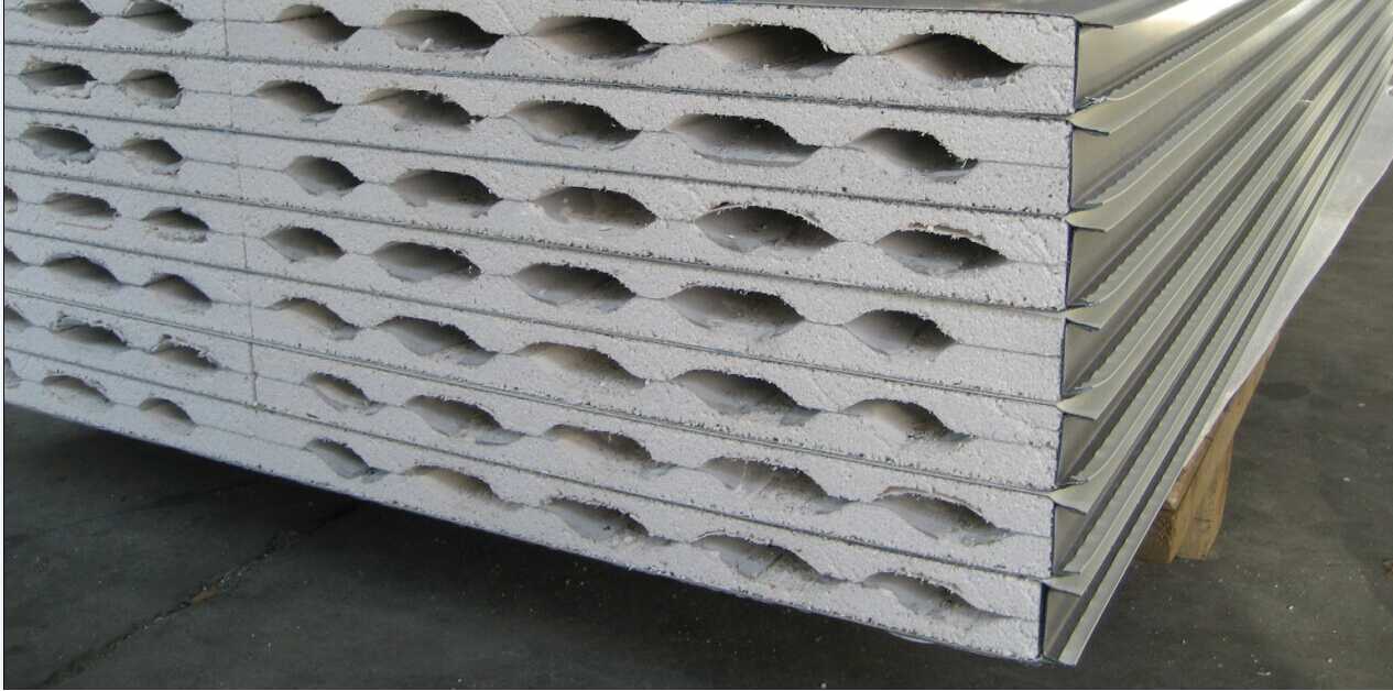 硫氧鎂夾芯板充分發(fā)揮了硫氧鎂復(fù)合材料的獨(dú)特性能,在防火,防潮,防脫膠,高強(qiáng)度,保溫,隔熱,吸音等方面有著顯著地優(yōu)點(diǎn)及功效。 生產(chǎn)工...